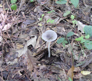 the woods I saw four different kinds of mushrooms. I knew we were in for a